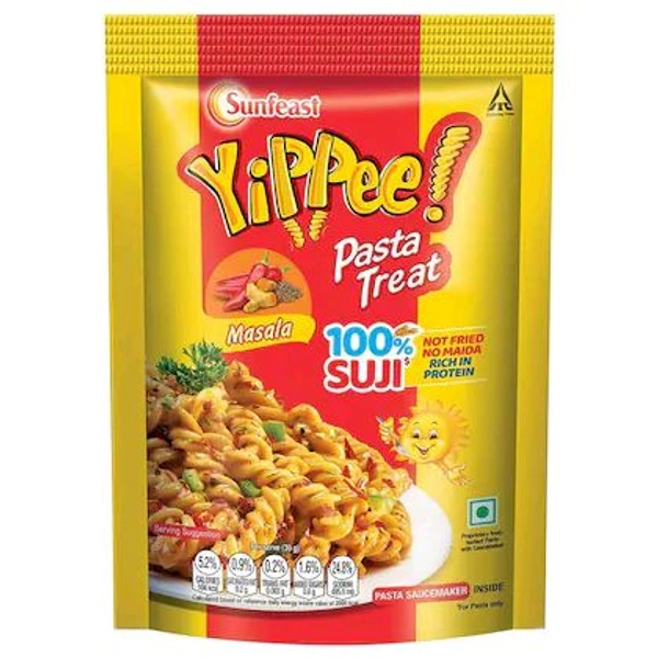 Get ready to spice up your pasta game with this Sunfeast YiPPee! Pasta Treat - the instant masala pasta is a fusion of Italian pasta with a delicious desi twist. Imagine creamy, melt-in-mouth pasta infused with aromatic masala flavours that tingle your taste buds.Made with 100% suji/ rava, is the perfect snack partner for your snack cravings. In just 8 minutes, you can this delicious snack that combines the best of both worlds, Italian pasta with a desi flair.