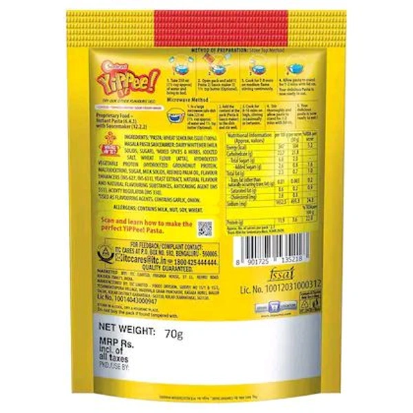 INSTANT PASTA: Easy to prepare and quick to finish, Sunfeast YiPPee! Pasta cooks in just under 8 minutes